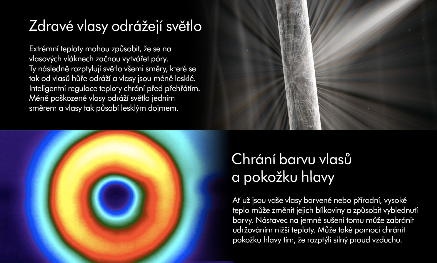 Nový nástavec pro jemné vysoušení je šetrnější k jemným vlasům a citlivé pokožce, rozptyluje vzduch a vytváří jemný, chladnější proud vzduchu – i přesto vlasy rychle vysouší.
